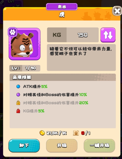 今天给大家带来介绍的是我们的特色骑宠-虎,作为《愤怒的小老虎之冲天炮》中的百兽之王-猛虎。虎的非常具有力量,但是我们今天要介绍的是“萌”虎